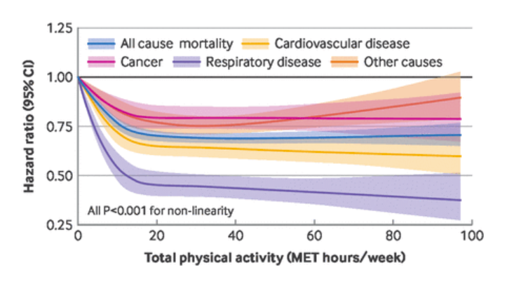 - The total amount of exercise is still the most important factor (the benefit levels off over about 6 hours moderate, or 3 hours vigorous per week)